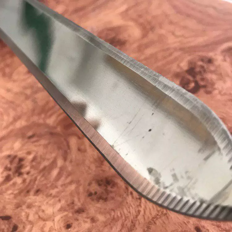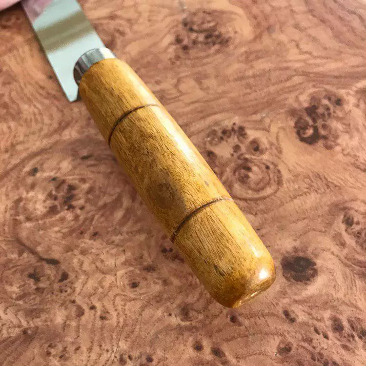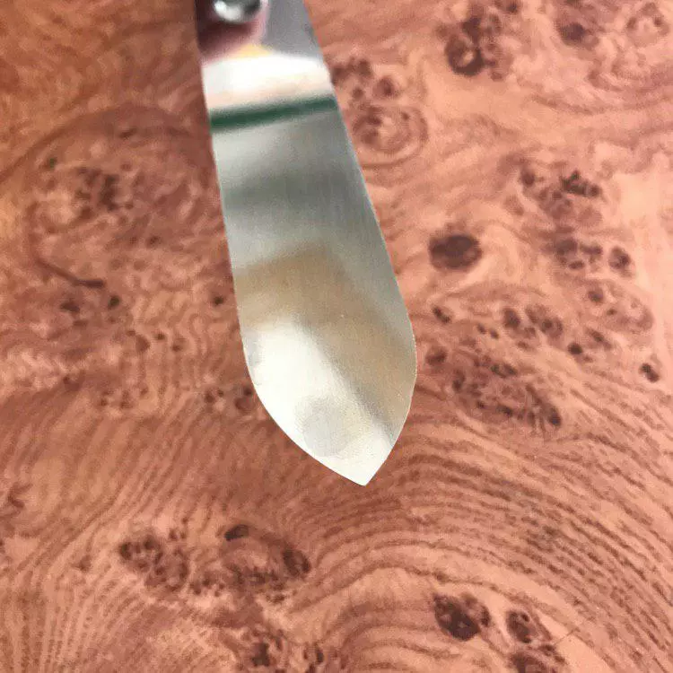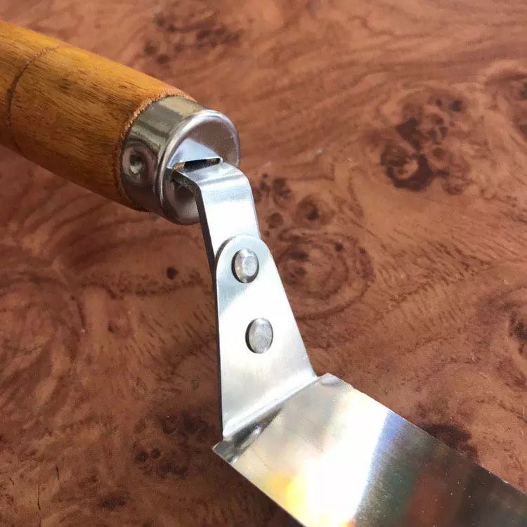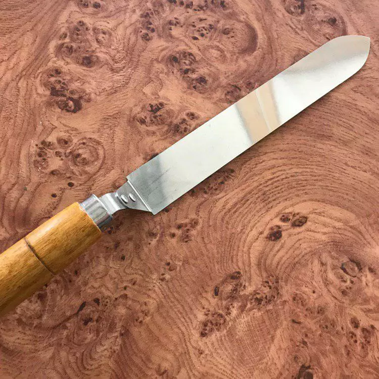 Ніж пасічний виготовляється нержавіючої сталі. Відрізняється звуженою формою леза, що полегшує роботу та зручність маневрування. Система кріплення гарантує міцність леза в точках згибу, достатню товщину кронштейна та міцність посадки ручки. Такий ніж має чудові ріжучі характеристики, добре заточується.