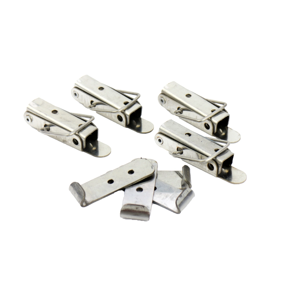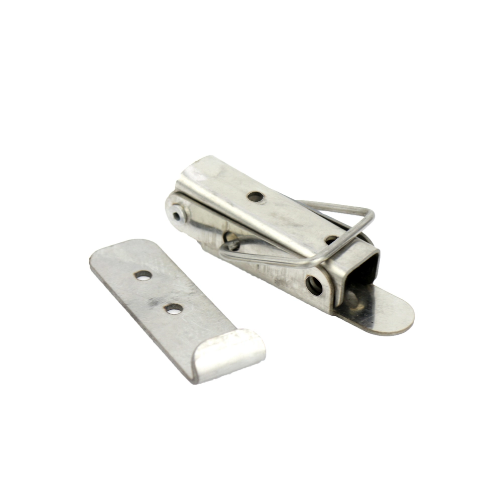 Скреп-защелка для корпуса из оцинкованной стали состоит из верхнего и нижнего корпусов с хомутом, соединенных шарнирно между собой, и скобы с гачком.Скреп и скобу закрепляют на различных деталях улья. При связывании деталей улья хомут скрепа надевают на крючок и натягивают с помощью верхнего корпуса скрепа. Для предотвращения самопроизвольного раскрытия скрепа оба его корпуса фиксируют штырем или шплинтом.